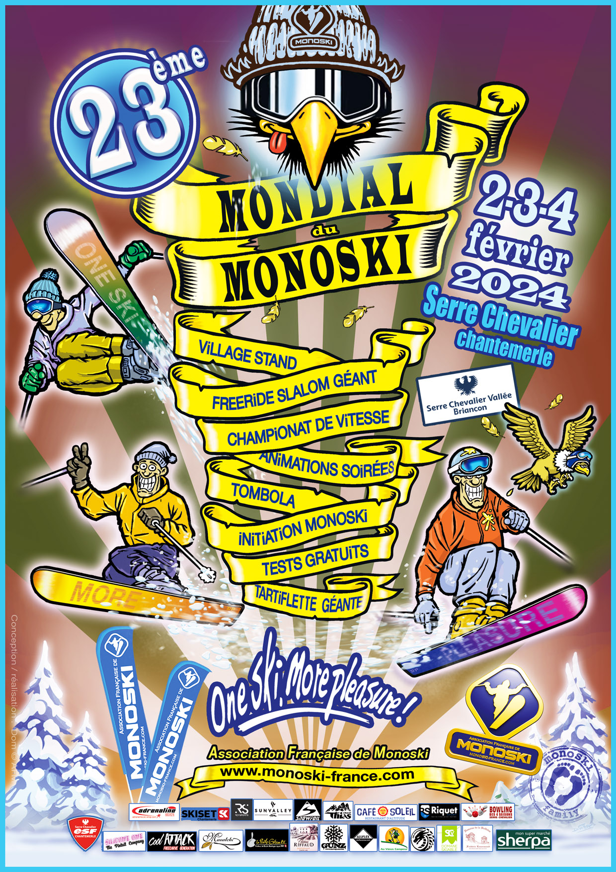 le mondial du monoski aura lieu du 2 au 4 février 2024 à Serre Chevalier (France). Les courses qui si dérouleront compteront comme championnat Suisse (pour la discipline du monoski).