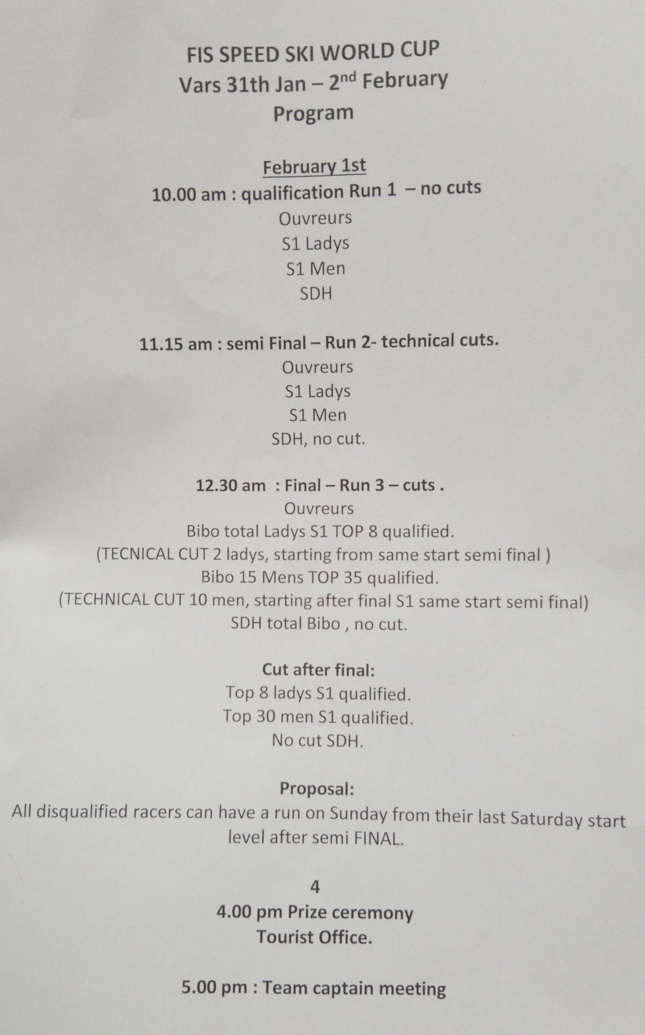 | FIS (Night Race) / WC + FIS / WC + FIS | S1 + S2 + S2 junior